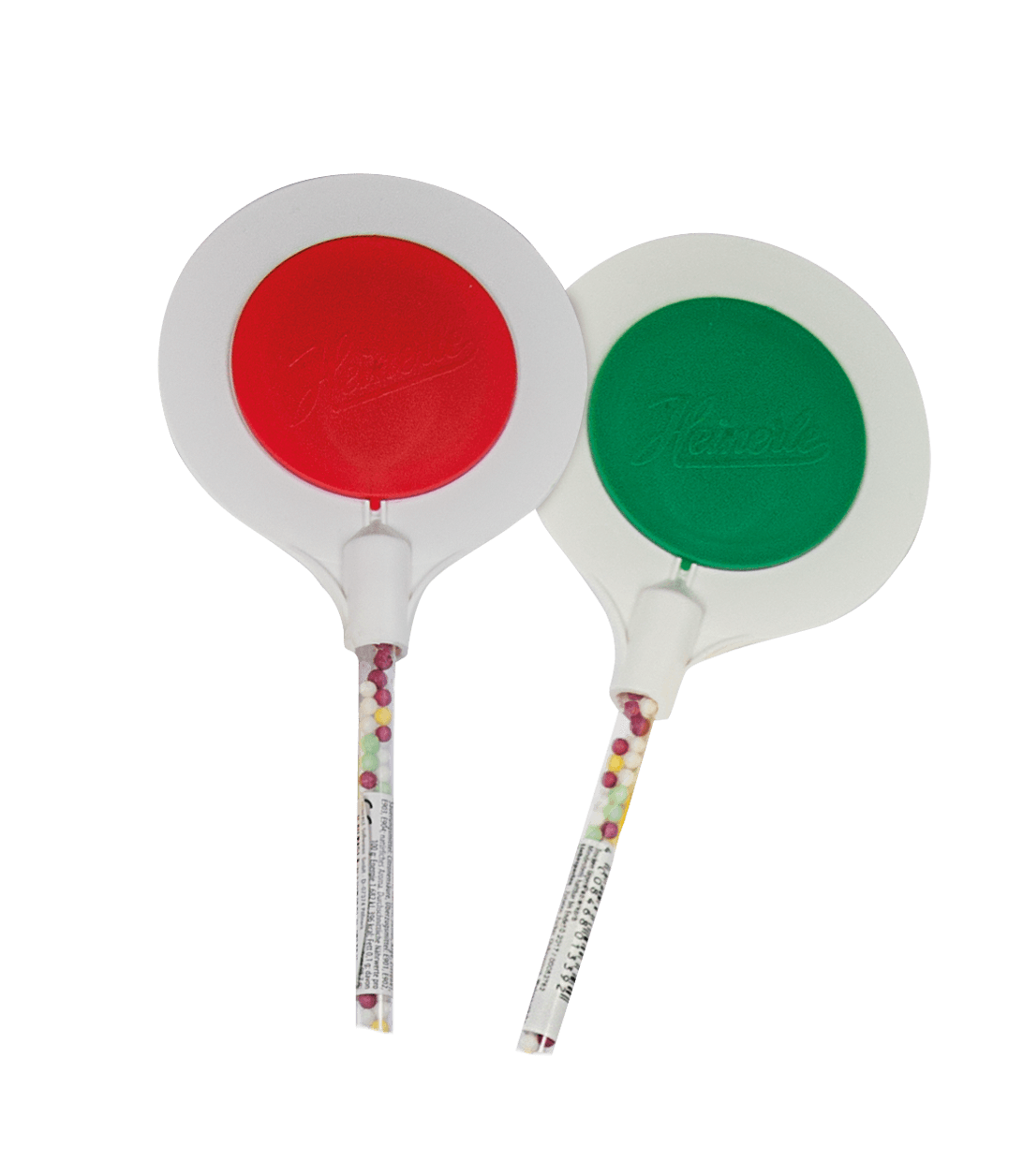 Kleine, bunte Zuckerkügelchen mit fruchtigem Orangengeschmack in kreativer Spielzeug-Winkerkelle. Da heißt es Spielen, Naschen, Spaß haben – für alle großen und kleinen Schaffner.